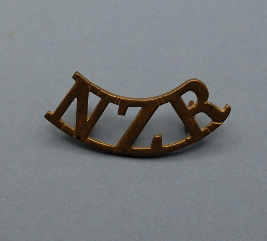 WW1 New Zealand Regiment Shoulder Title. NZR brass single